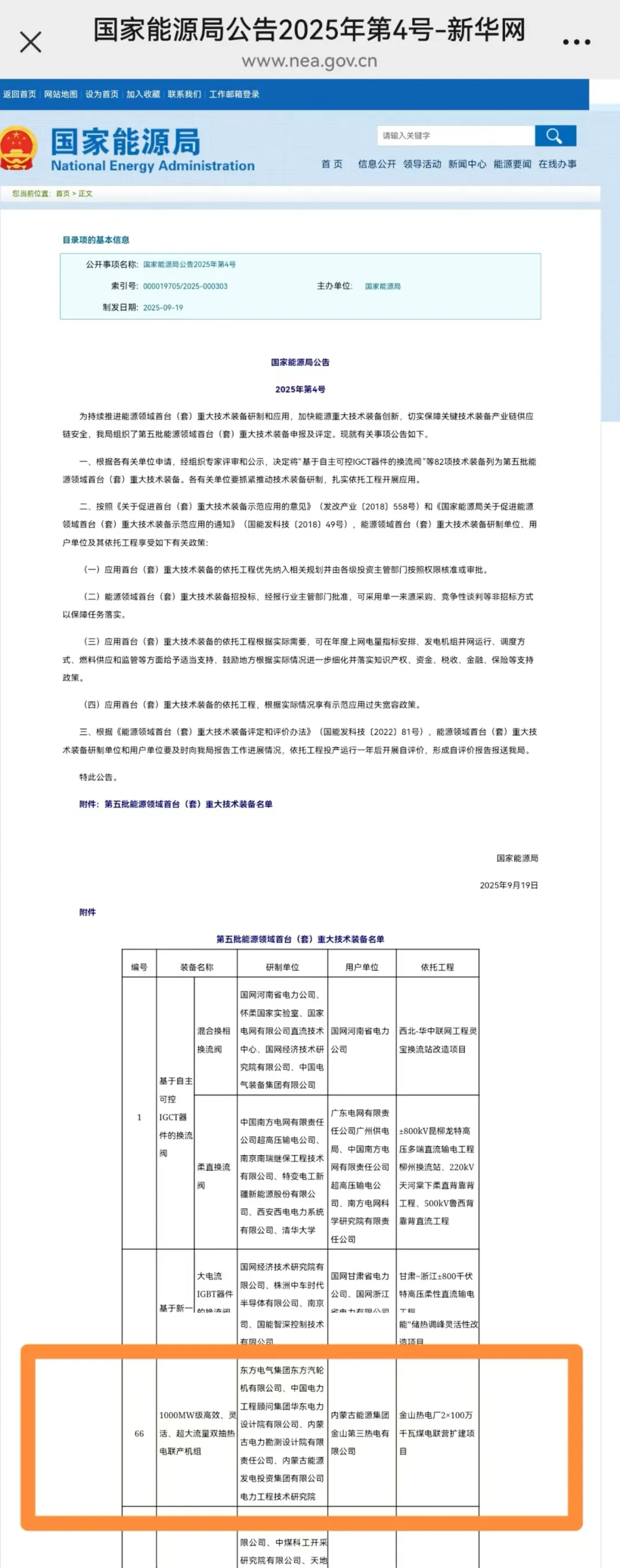 近日,北京百靈天地環保科技股份有限公司(簡稱:百靈股份)收到內蒙古能源集團金山第三熱電有限公司發來的感謝信,對百靈股份在金山三期“1000MW級高效、靈活、超大流量雙抽熱電聯產機組”成功入選國家能源局第五批能源領域首臺(套)重大技術裝備工作中提供的有利支持表示肯定,對公司及項目團隊展現的高度專業素養、負責態度與勇于擔當的團隊精神致以謝意。該機組作為國內首臺套百萬級最大雙抽熱電聯產機組,是蒙能集團在能源關鍵技術領域實現的重大突破。